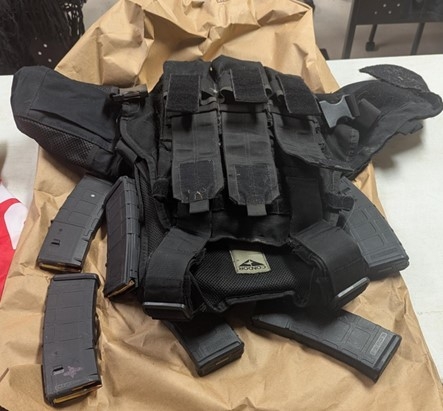 Twelve sets of body armor were seized from vehicles and individuals associated with the incident.
